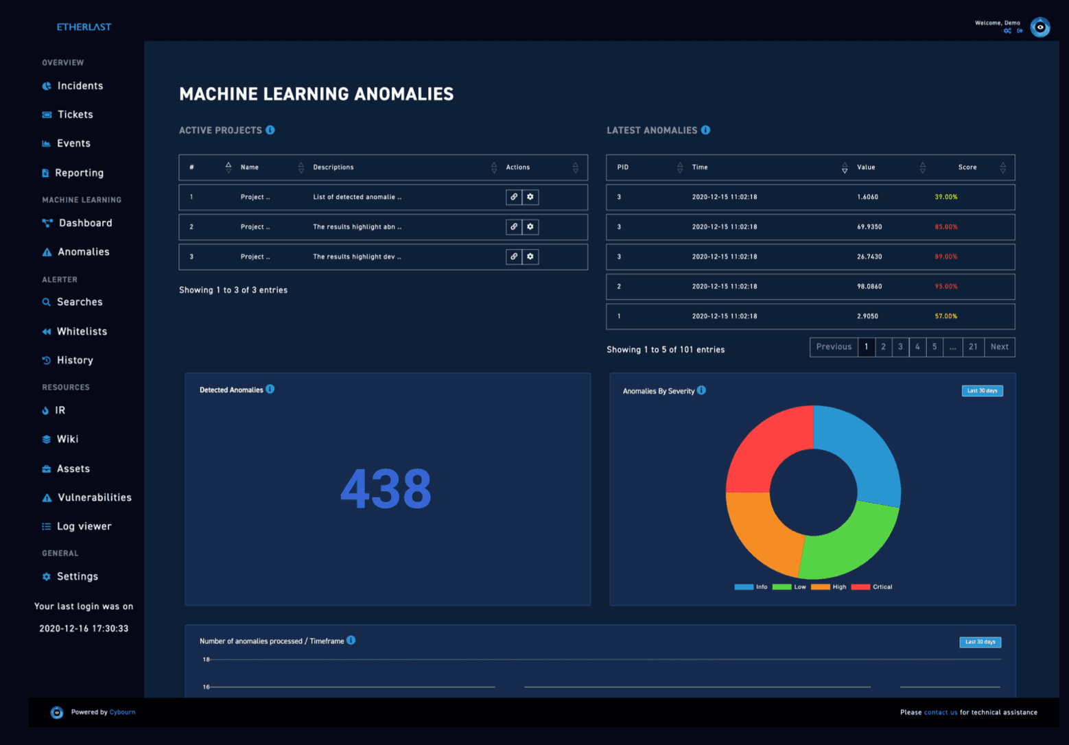 CyBourn leverages machine learning algorithms to build network and user behavioral patterns, detect anomalies accurately, perform in-depth investigations, and act swiftly to contain potential threats, enhance proactive analysis, and map behavior.